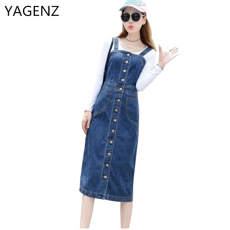 YAGENZ 2018 Весна/Лето женский джинсовый сарафан синий тонкий Sunspender джинсовое платье плюс размер 4XL 5XL повседневное джинсовое платье осень новое