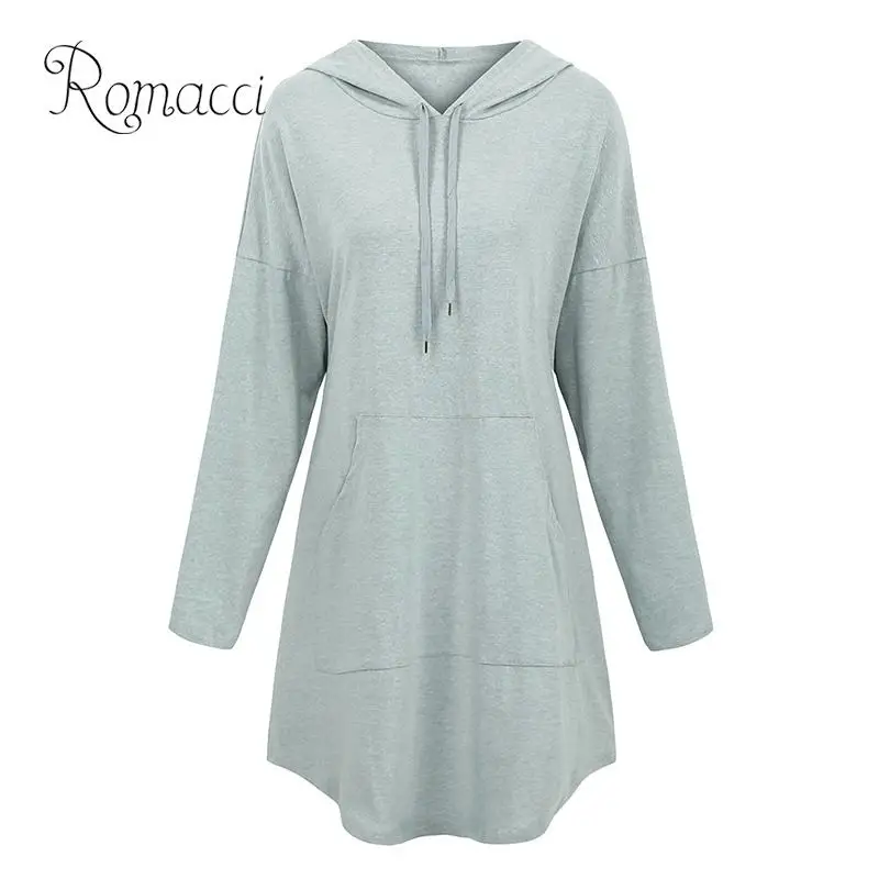 Romacci 2019, осенние платья с капюшоном, женское мини платье с карманами и длинным рукавом, 4XL 5XL, плюс размер, Женское зимнее Повседневное платье-толстовка