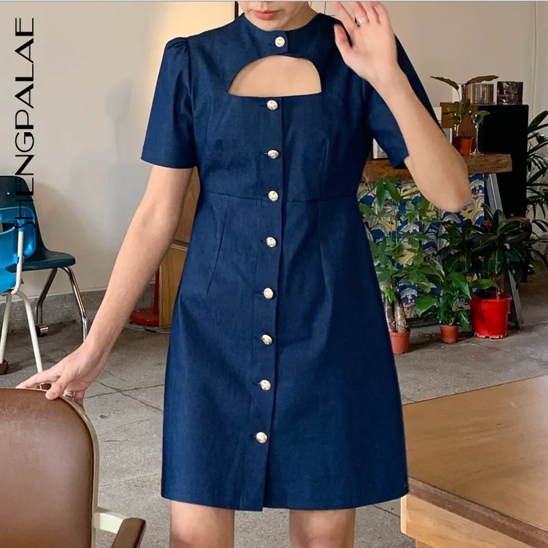 Женское винтажное платье SHENGPALAE, тонкое платье с высокой талией и круглым вырезом, 2019