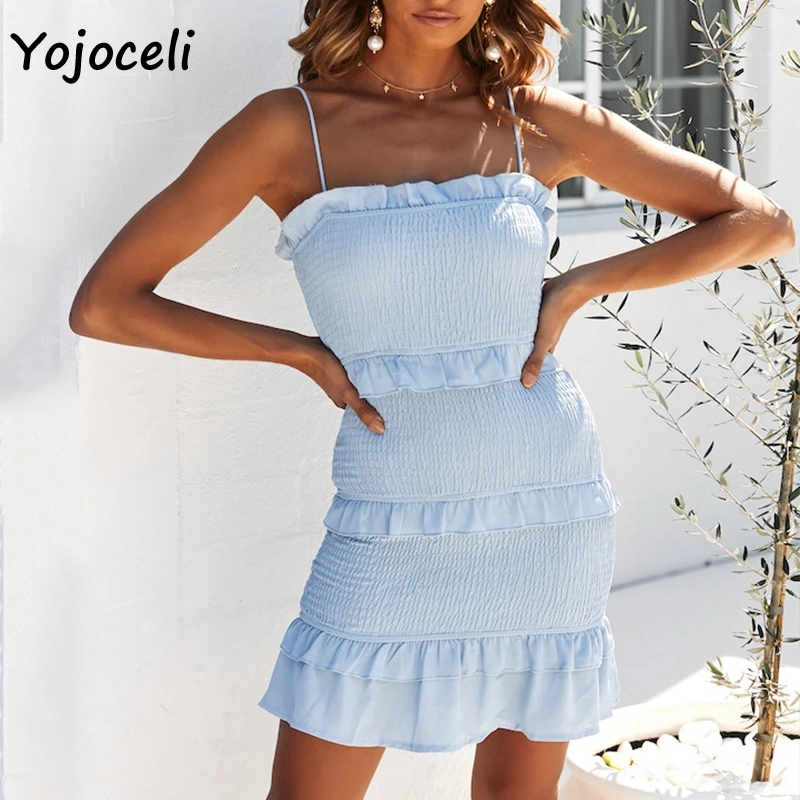 Yojoceli женское гофрированное платье с оборками, женское облегающее платье, Пляжное Платье в стиле бохо на весну и лето