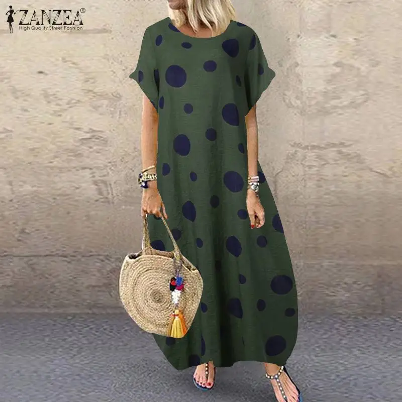 M 5XL летнее длинное платье макси, женское платье с коротким рукавом и принтом, винтажные вечерние платья в горошек в богемном стиле, пляжные п...