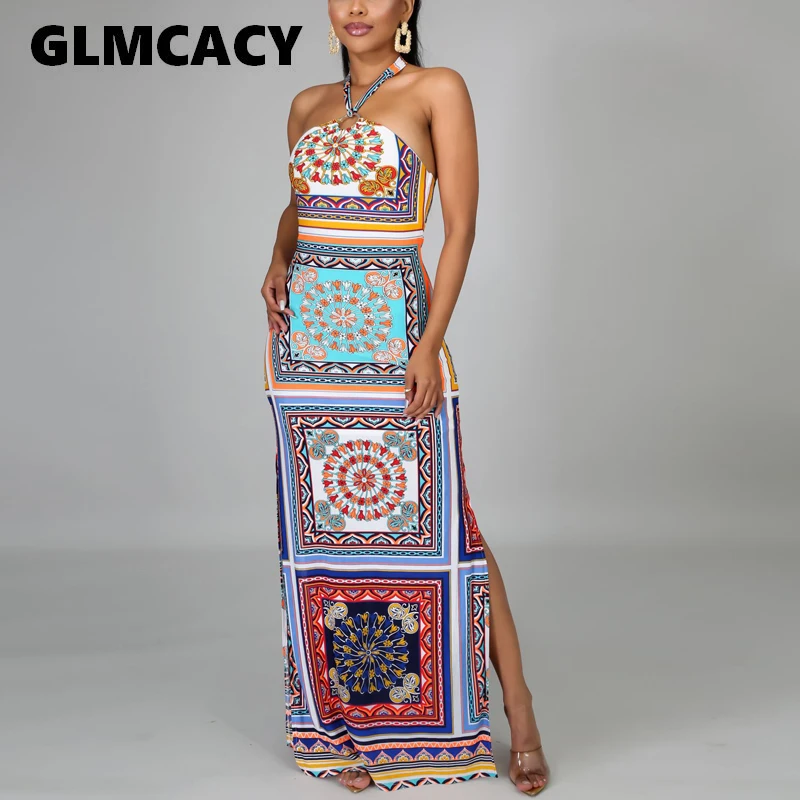 Женское винтажное сексуальное платье с этническим принтом, Клубное пляжное летнее платье с лямкой на шее, короткое праздничное платье в стиле ретро с вырезами, Vestidos De Fiesta