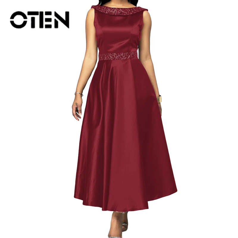 OTEN Элегантное Длинное Платье с круглым вырезом и высокой талией, женское вечернее праздничное платье с открытой спинкой без рукавов, весна 2020
