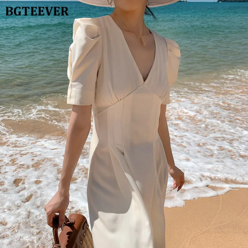 Женское длинное платье трапециевидной формы BGTEEVER, винтажный буф с рукавами, однотонное вечернее платье 2020