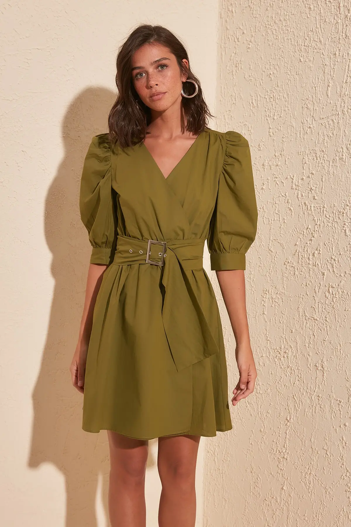 Зимние осенние вельветовые платья зеленого цвета, повседневные свободные платья с длинными рукавами, платье с отложным воротником, трапеци...