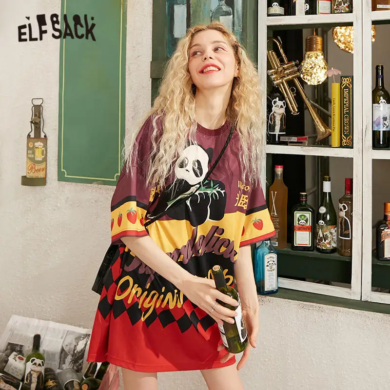 Женское повседневное мини-платье ELFSACK, корейское повседневное фиолетовое платье с принтом панды, с бусинами и клубничным бусинами, повседневные платья для женщин 2020