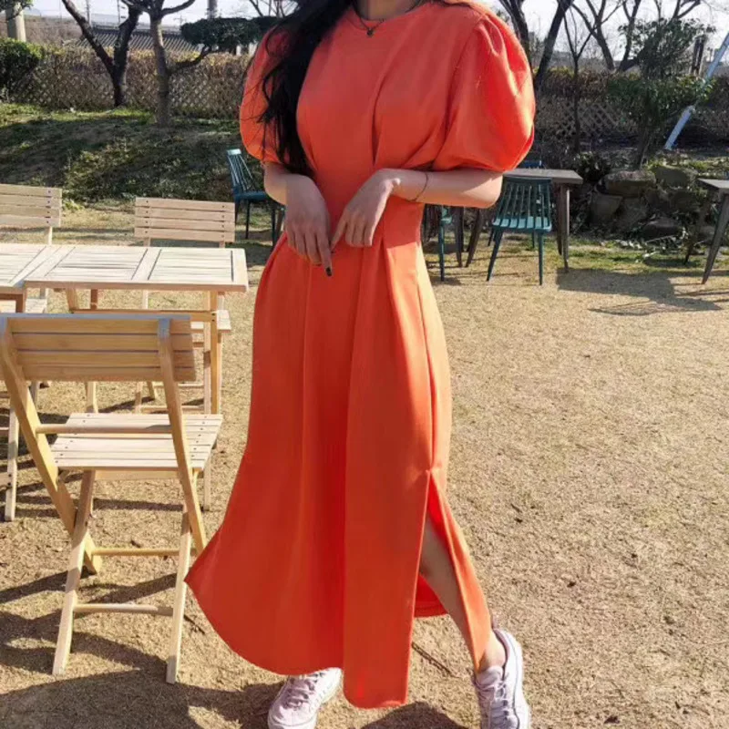 Женское винтажное свободное платье макси с высокой талией, Элегантное Длинное платье в Корейском стиле, новинка 2020
