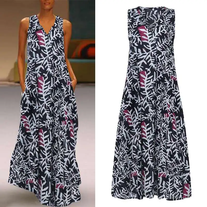 Богемное женское платье 2019 летний сарафан Женские Длинные Танки длинные макси Vestidos ZANZEA Женские винтажные Вечерние Платья с цветочным принт...