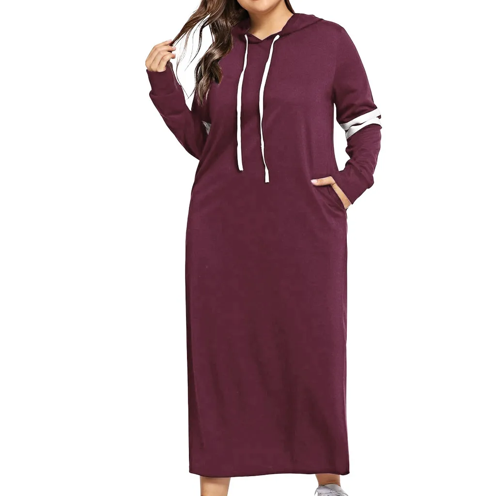 Женские платья размера плюс 5XL Женские с длинным рукавом с капюшоном контрастная полосатая сторона печати шнурком карманы бейсбольное Спортивное платье # E