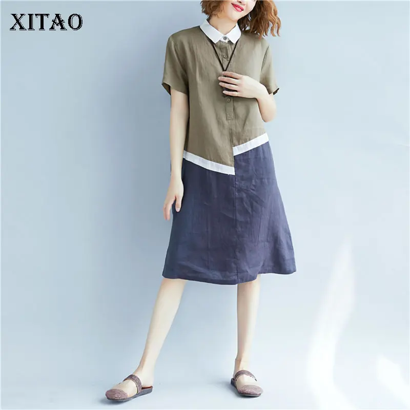 XITAO женское платье большого размера Женская корейская мода отложной воротник пуловер пэчворк дикий Джокер свободный элегантный повседневн...