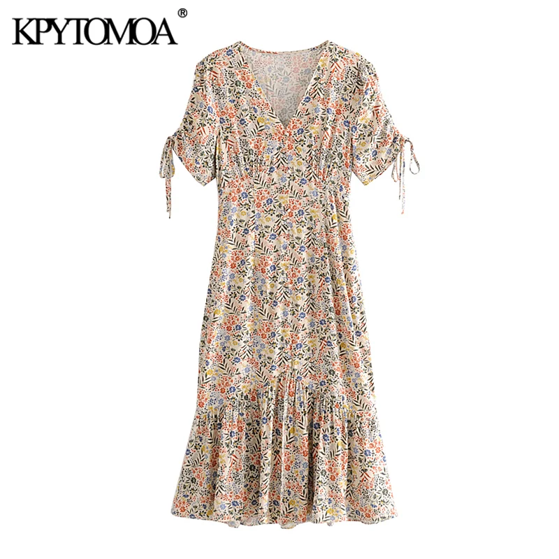 Женское платье-миди KPYTOMOA, винтажное платье с цветочным принтом, v-образным вырезом и коротким рукавом, лето 2020