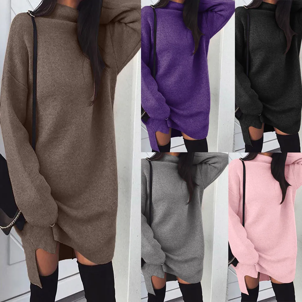 Женский Теплый свитер осень зима платье пуловеры облегающее трикотажное водолазка одноцветные мини-платья с длинным рукавом Повседневные ...