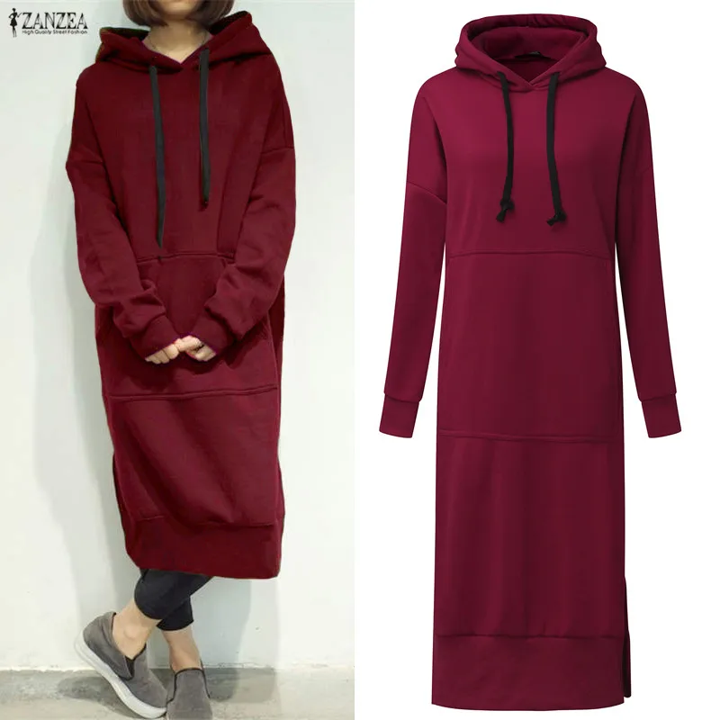 ZANZEA/осеннее длинное платье-Толстовка 2019, зимний женский Повседневный флисовый пуловер с капюшоном и длинными рукавами, свободные базовые вечерние платья, Vestido Femme7