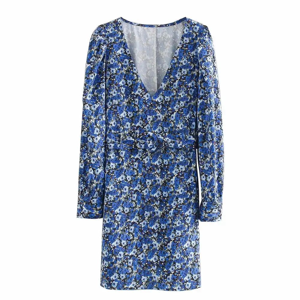 2020 женское винтажное платье с v-образным вырезом и цветочным принтом, повседневное шикарное платье с поясом, офисное женское платье с пышным...