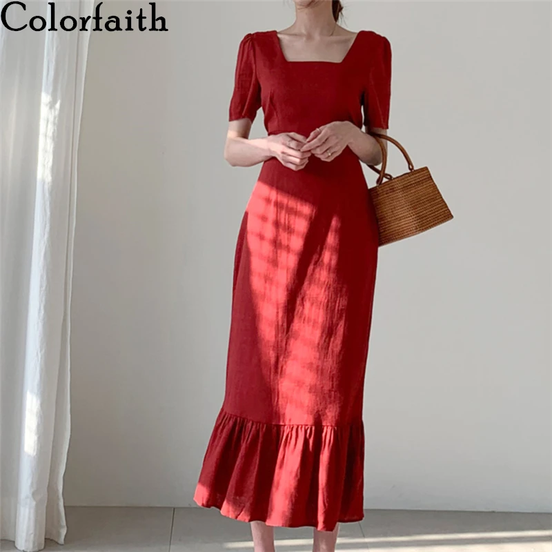 Colorfaith, новинка 2020, женские летние платья, повседневные, на шнуровке, с бантом, высокая талия, квадратный воротник, труба, хлопок и лен, длинное платье DR88361