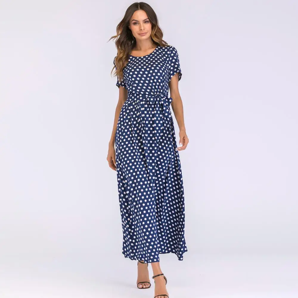 Старинные платья в горошек женщины макси длинное платье элегантная леди летнее платье 2019 с коротким рукавом с высокой талией A-Line платье плюс размер 5XL