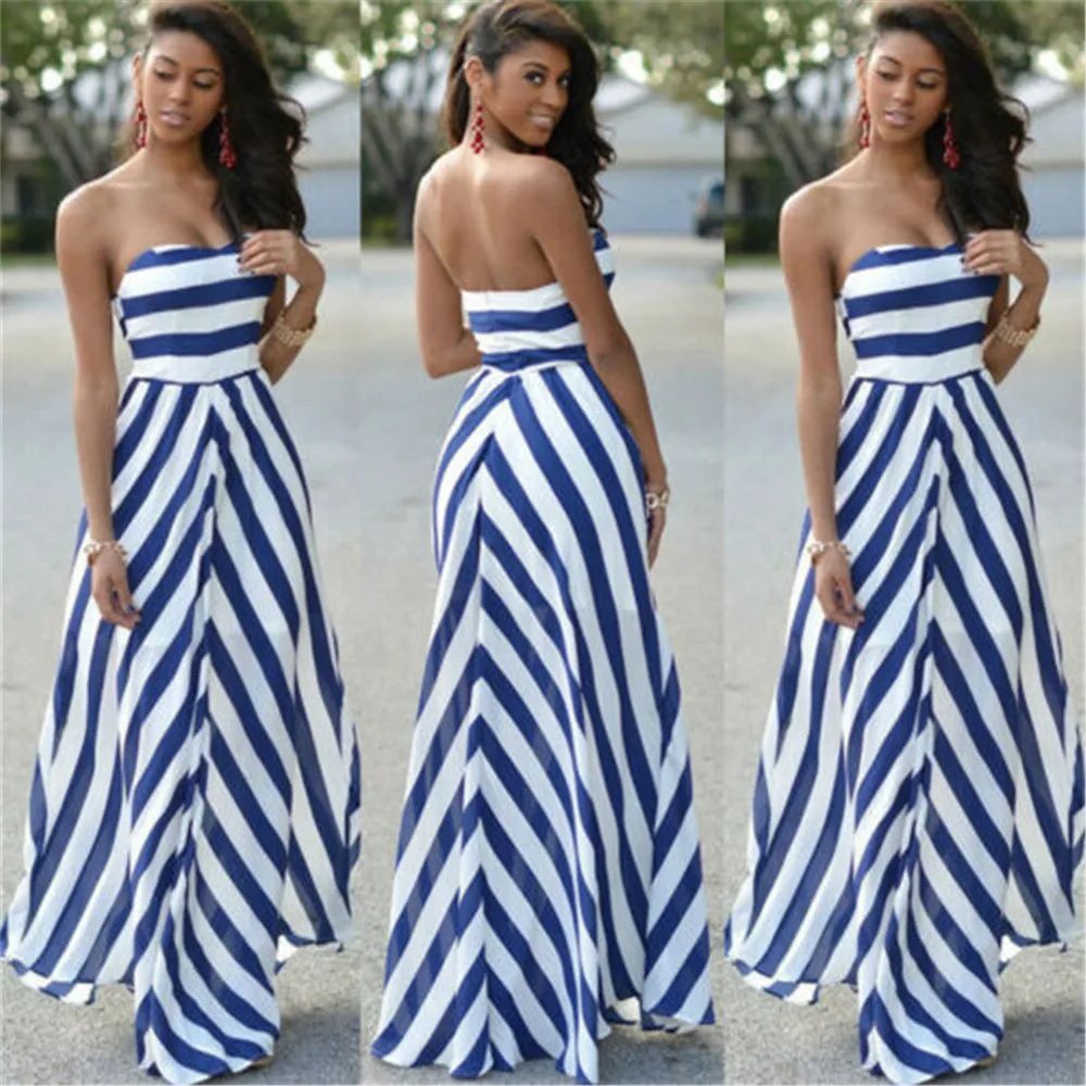 Женские пикантные без рукавов повседневное Boho полосатый шифон для летних вечеринок вечерние пляжный длинный макси платье сарафан Новинка ...