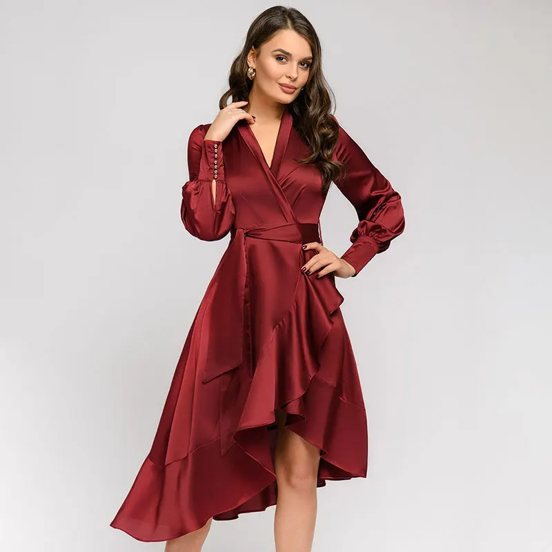 Женское платье с поясом Vintgae, плиссированное платье трапециевидной формы с длинным рукавом, сексуальное однотонное Элегантное повседневное платье с v-образным вырезом, лето 2020, новое модное платье
