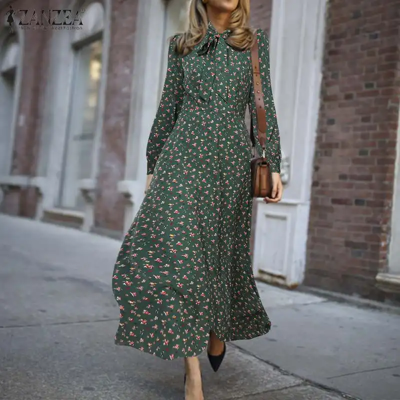 Женское богемное платье ZANZEA, Элегантное Длинное Платье макси с цветочным принтом, Пляжное Платье для вечеринки, 2020