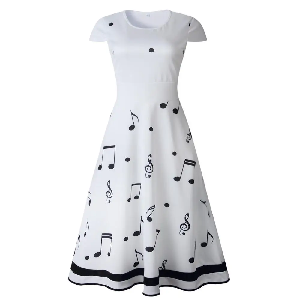 Женское платье на весну и лето, женское платье без рукавов с принтом музыкальной белой ноты и круглым вырезом, вечернее платье для вечеринки