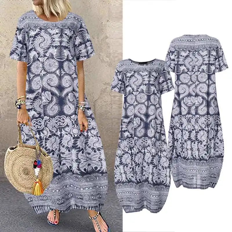 ZANZEA богемное женское платье 2019 летний сарафан винтажный цветочный принт длинная рубашка макси Vestidos Повседневные платья с карманами плюс ра...