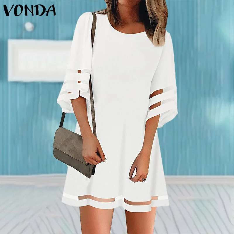VONDA/Белое Женское платье в винтажном стиле 3/4 с расклешенными рукавами, вечерние платья 2020, летнее праздничное платье, пляжный сарафан размера плюс S-5XL