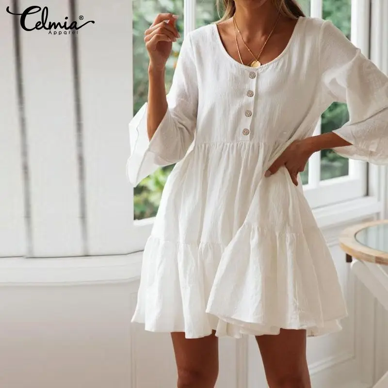 Celmia Лето 2019 г. Vinatge для женщин плиссированные льняные длинная рубашка платье повседневное короткий рукав свободные макси vestidos халат плюс ра...