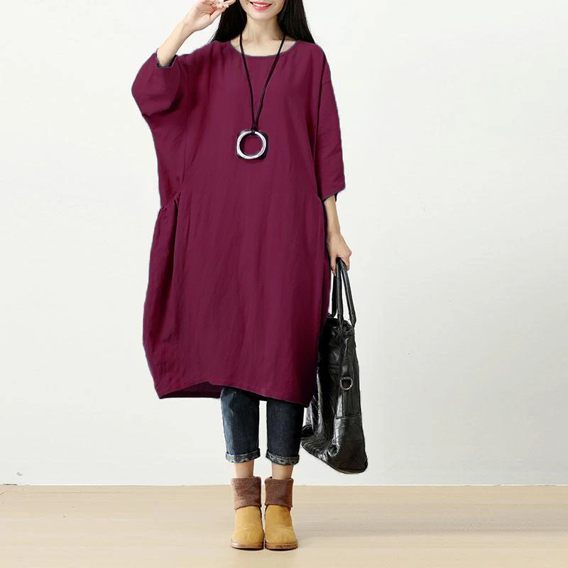 Женское летнее однотонное платье-рубашка миди размера плюс, винтажное повседневное свободное платье с круглым вырезом и карманами, хлопковое льняное платье vestidos mujer