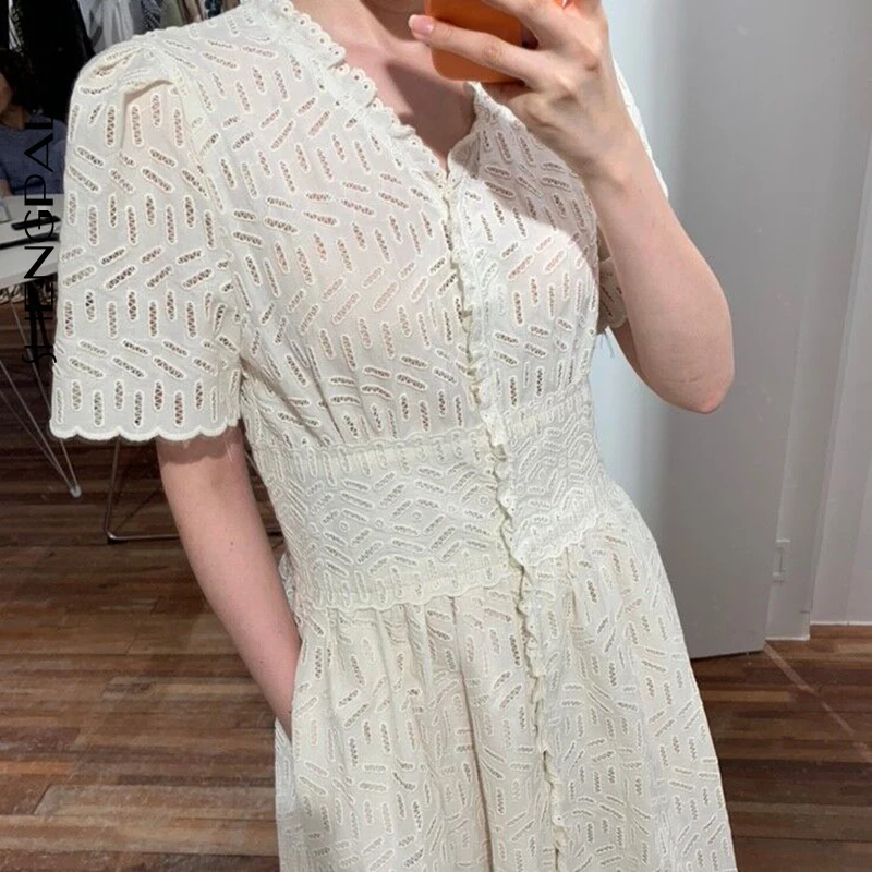 Женское винтажное платье MISSJOY, белое кружевное платье на пуговицах с открытой спинкой, с рокабилли
