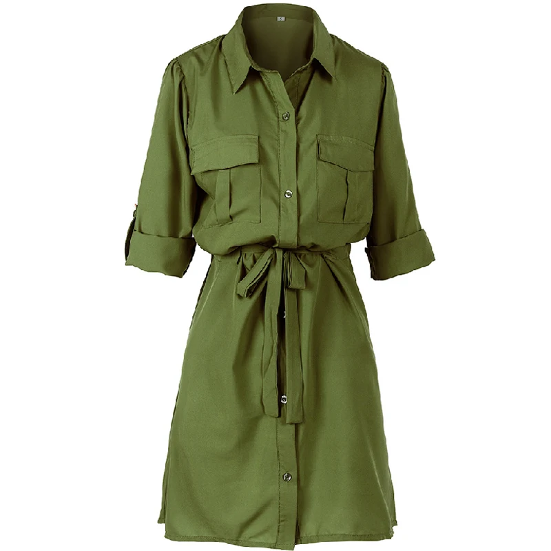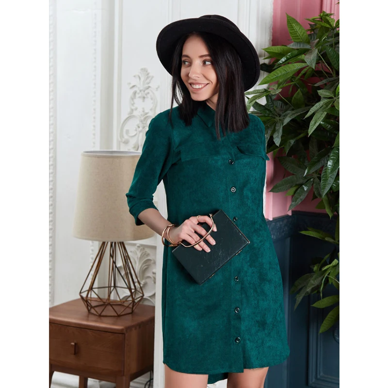 Женское мини-платье-рубашка 2019 весенне-осеннее дамское вечернее платье зеленого и белого цвета с высокой талией на пуговицах женские плать...