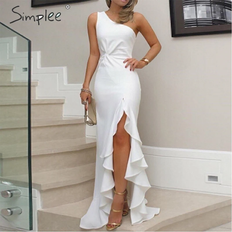 Simplee, сексуальное вечернее платье, плюс размер, на одно плечо, с рюшами, облегающее платье, элегантное, женское, одноцветное, макси платье, vestidos