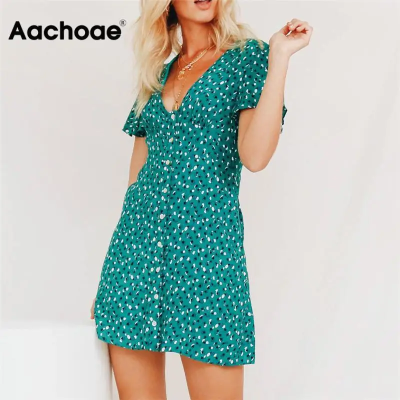 Женское платье Лето 2019 Винтаж пикантные богемные Цветочный принт вечерние платье с глубоким v-образным вырезом мини пляжное платье Открыто...