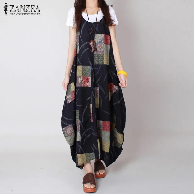 Женское богемное платье без рукавов ZANZEA, длинное винтажное платье макси с принтом большого размера 5XL, лето 2020