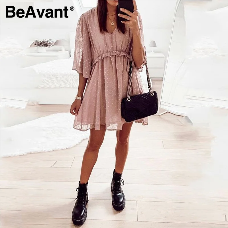 Женское платье с v-образным вырезом BeAvant, элегантное короткое летнее платье в горошек с открытой спиной, ТРАПЕЦИЕВИДНОЕ офисное повседневное мини-платье