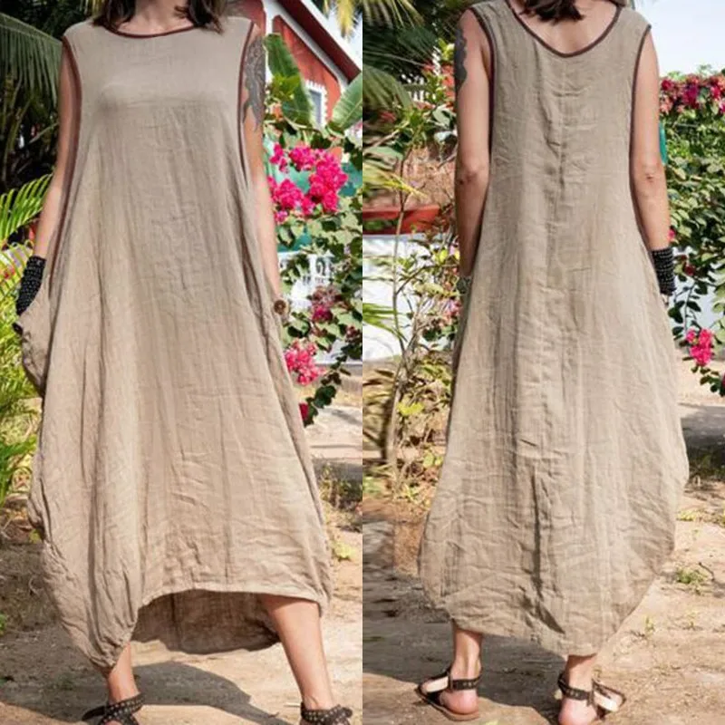 ZANZEA 2020 винтажное летнее платье миди женский пляжный сарафан Повседневный Без Рукавов Vestidos женский о-образный вырез мешковатый халат размера плюс 5XL