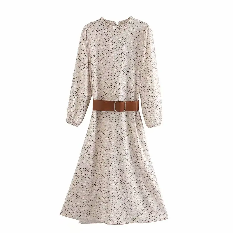 Новинка, женское элегантное Кружевное платье миди с круглым вырезом и поясом в горошек, женское платье с длинным рукавом, шикарное праздничное платье DS3430