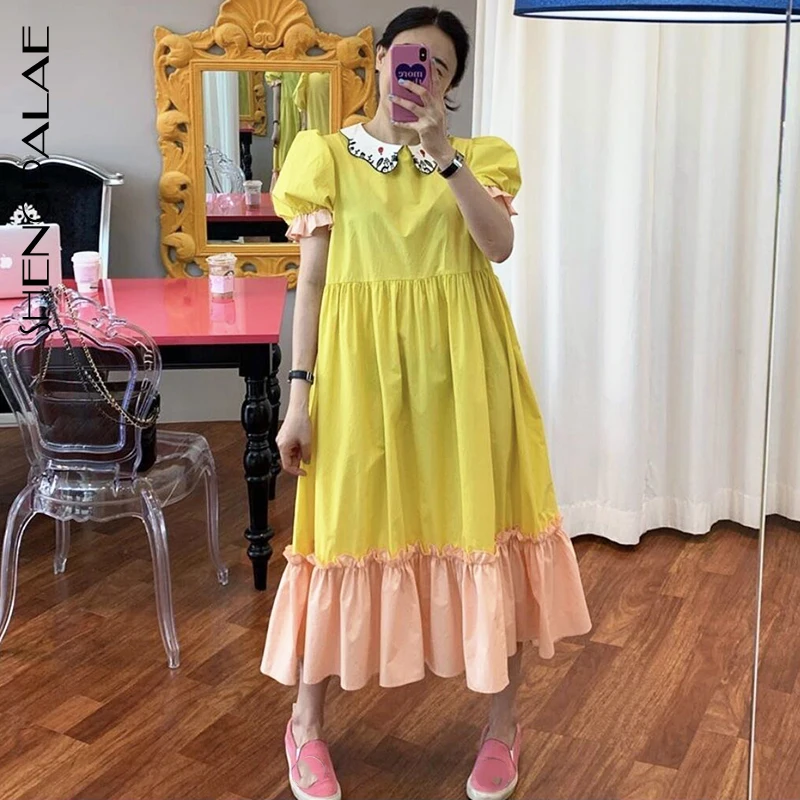 Женское винтажное платье SHENGPALAE, тонкое платье с высокой талией и коротким рукавом, 2019