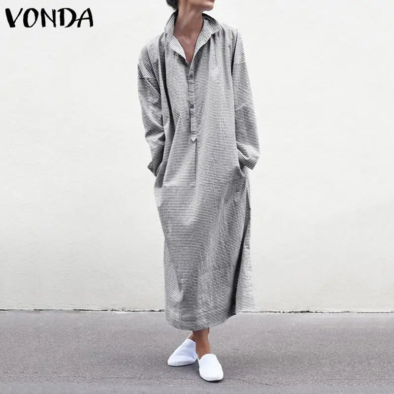 Полосатое платье с отложным воротником, вечерние длинные платья-рубашки VONDA 2019, повседневные свободные платья больших размеров, женские пля...
