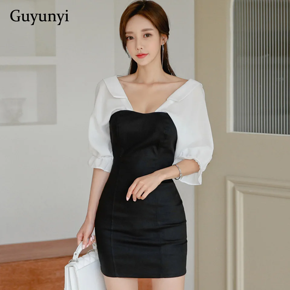 Сексуальное платье для ночного клуба 2019 осеннее белое платье с v-образным вырезом и оборками, с коротким рукавом, с высокой талией, с открыто...