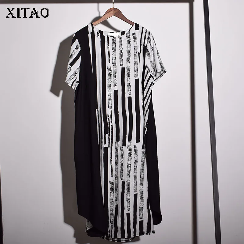 [XITAO] Для женщин Новое поступление 2018 Лето Корея Мода Свободные с круглым вырезом пуловер с короткими рукавами платье с принтом Повседневные...