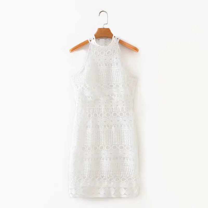 Лето 2020 женское элегантное кружевное мини-платье без рукавов с бретелькой через шею, женское шикарное ажурное лоскутное тонкое кружевное платье, vestidos DS3588