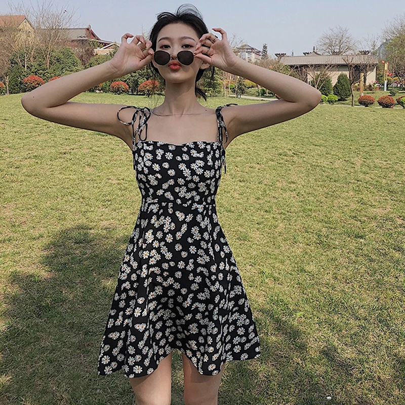 2020 летнее винтажное платье с цветочным принтом и оборками, женское корейское платье, уличная одежда, облегающее и расклешенное платье