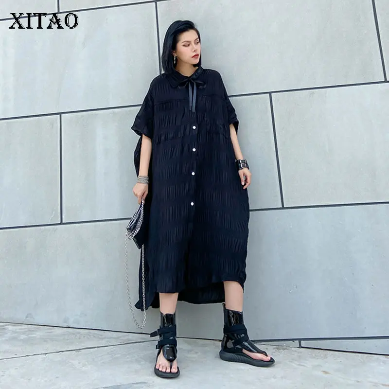Женское плиссированное платье XITAO, черное платье на завязках, повседневный стиль, на лето 2020