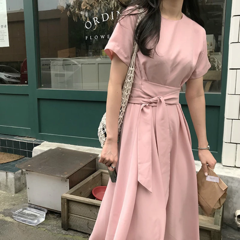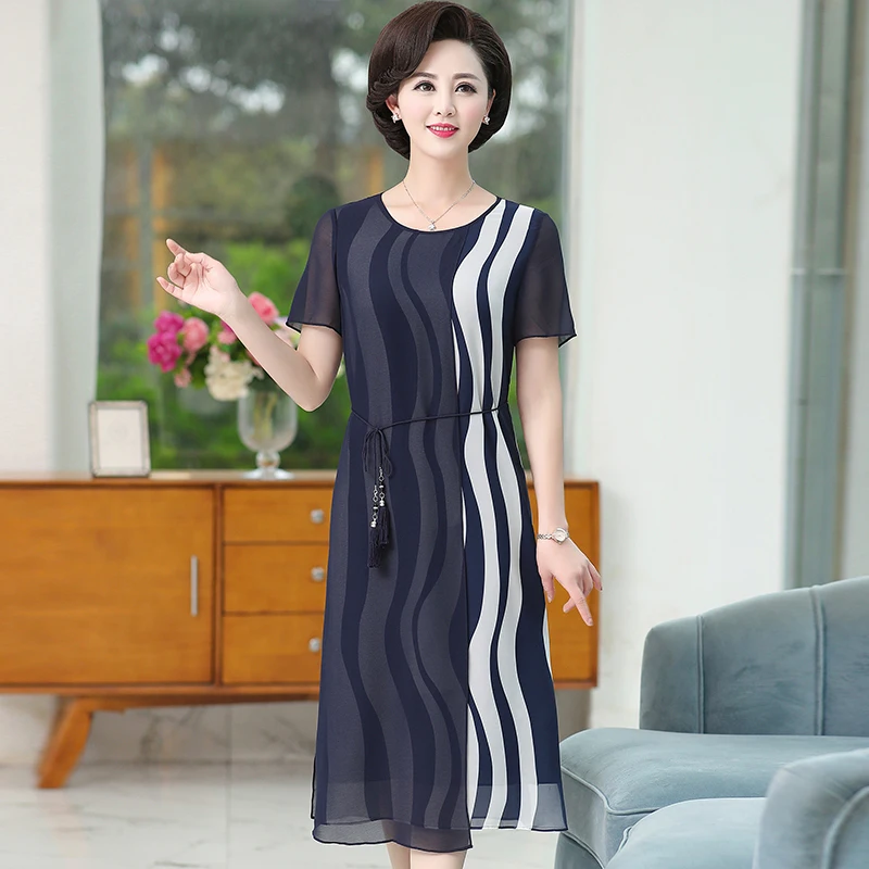 Женское летнее Элегантное длинное шифоновое платье с высокой талией и поясом с коротким рукавом, приталенный сарафан средней длины трапециевидной формы во французском стиле