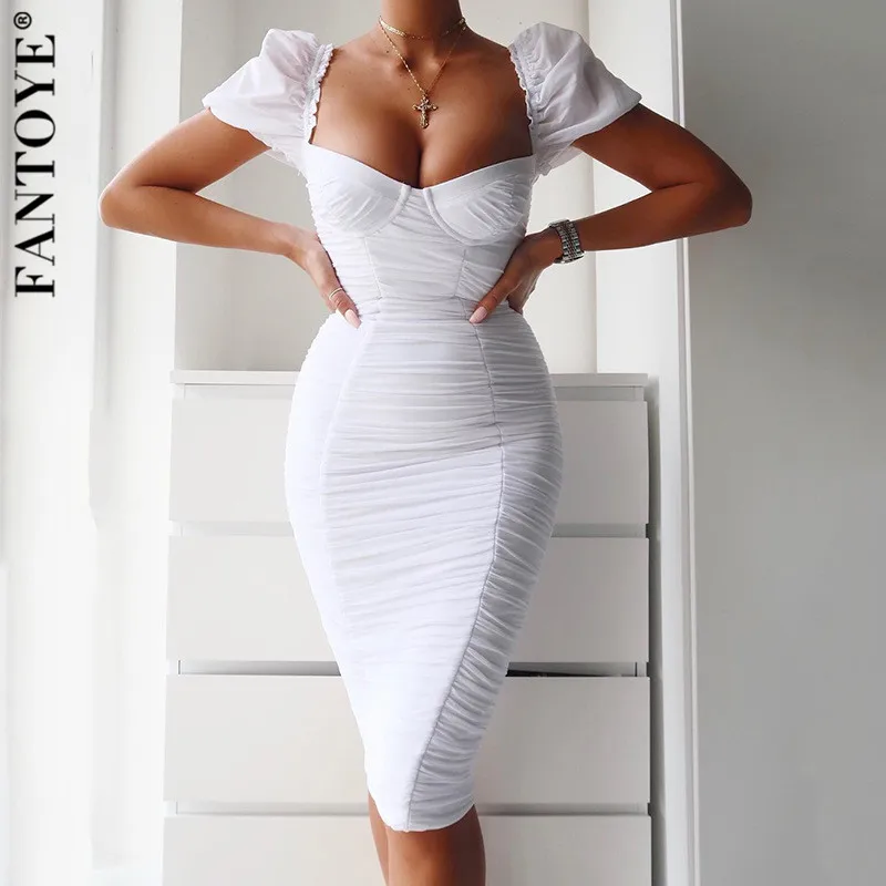 FANTOYE, без бретелек, сексуальное летнее платье, женское, элегантное, короткий рукав, с рюшами, бодикон, платье Вечерние, женское, двойная ткань, Сплит, Клубное платье