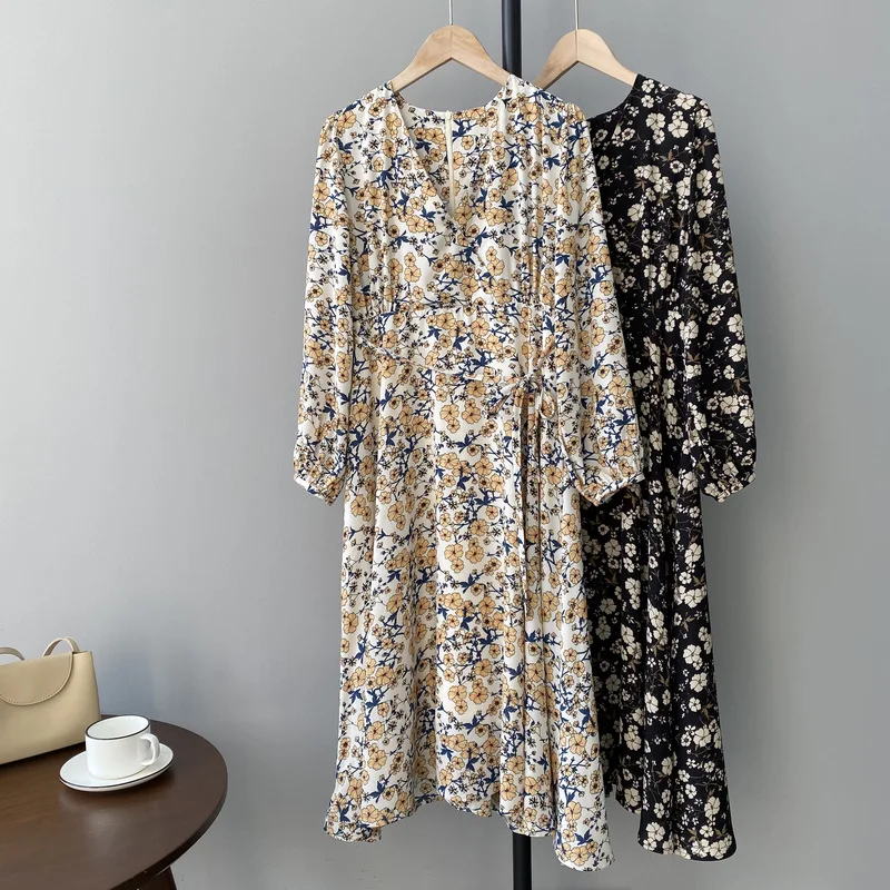 Высококачественное женское платье с цветочным принтом, шифоновое платье с v-образным вырезом и длинным рукавом, приталенное женское платье миди 2020, шикарное платье Z675