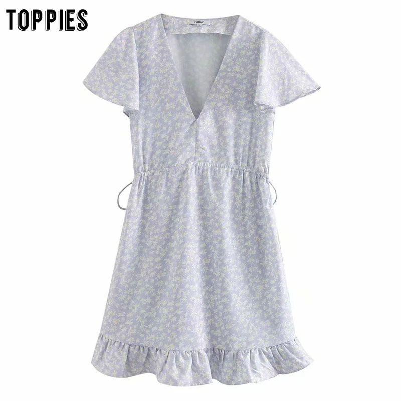 Toppies/летнее платье на завязках; Приталенное платье во французском стиле; Мини-светильник; Фиолетовые пляжные Блузы