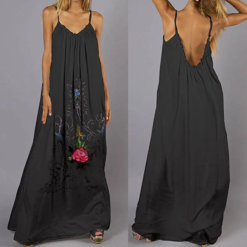 Женское богемное длинное платье-макси на тонких бретельках с открытой спиной и цветочным принтом, повседневный свободный сарафан, Пляжное платье