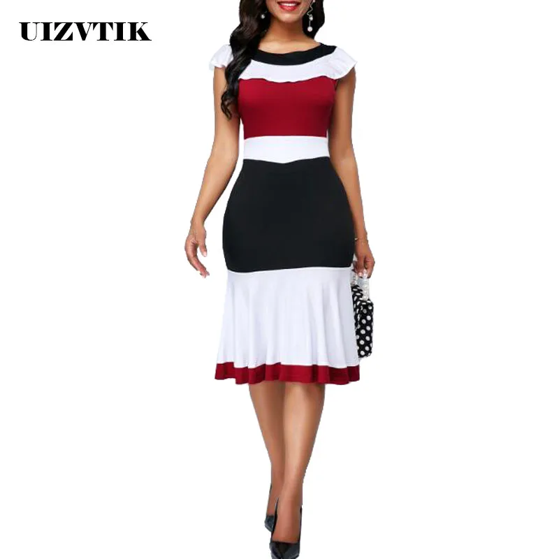 Лоскутное летнее платье для женщин 2019 повседневное плюс размер тонкие оборки офисные трапециевидные платья элегантные винтажные сексуаль...