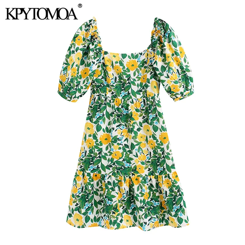 KPYTOMOA женское элегантное модное мини-платье с цветочным принтом, винтажные женские платья с коротким рукавом и открытой спиной на молнии, 2020